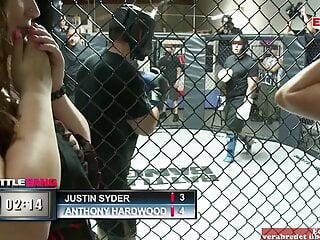 Behaarte Brünette mit natürlichen Titten wird im Gefängnis gefickt